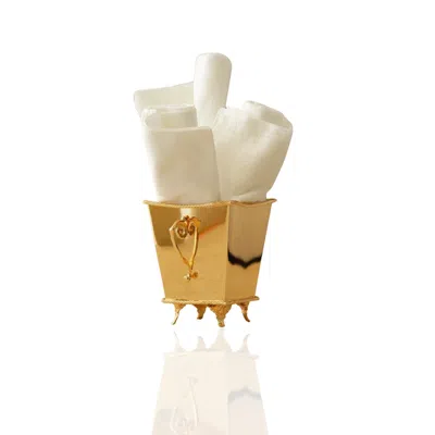 Gold / Black Handmade Marble And Brass Towel Holder & Black Marble Base In Multi