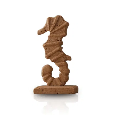 Brown Terracotta Travertine Seahorse Sculpture