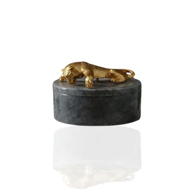 Gold / Grey Golden Tiger Marble Box, Handcrafted Decorative Storage In Multi