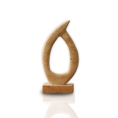 Neutrals Handmade Teardrop Travertine Sculpture, Beige & Cutout Form In Sand