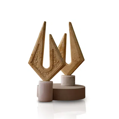 Neutrals Geometric Travertine Sculpture, Natural Beige Shape In Sand
