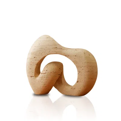Neutrals Handmade Travertine Sculpture For Interior Display, Beige & Abstract Organic Form In Sand