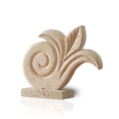 White Travertine Sculpture For Interior Display, Beige & Laurel Leaf Spiral Detail