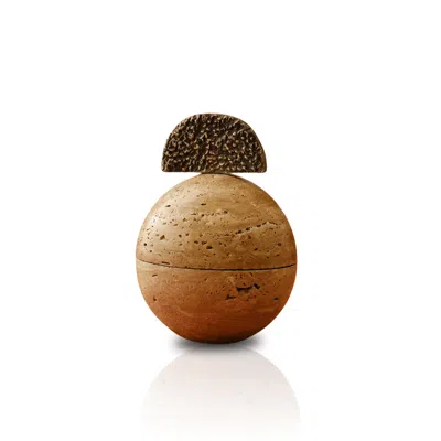 Neutrals / Brown Natural Travertine Stone & Textured Bronze Decorative Sculpture