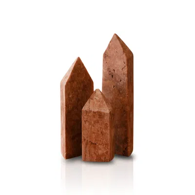 Three Piece Travertine Bookend Set – Natural Red Stone Obelisk Design