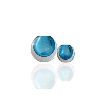 Blue / White Set Of Two Murano Colored Glass Sphere Sculpture – Ocean Blue Core In Multi