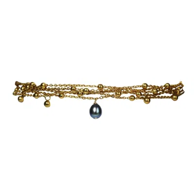 Women's Blue / Black / Gold Necklace - Renaissance Peacock Freshwater Pearl & Gold Choker