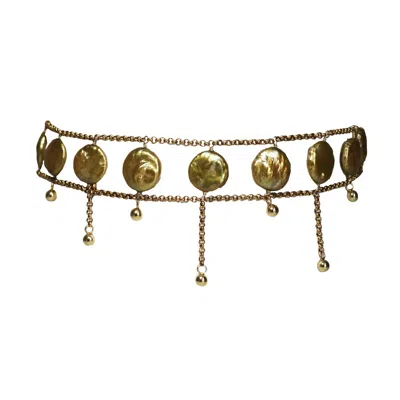 Women's Gold / Green Necklace - White Coin & Gold Pearl Empress Choker In Multi