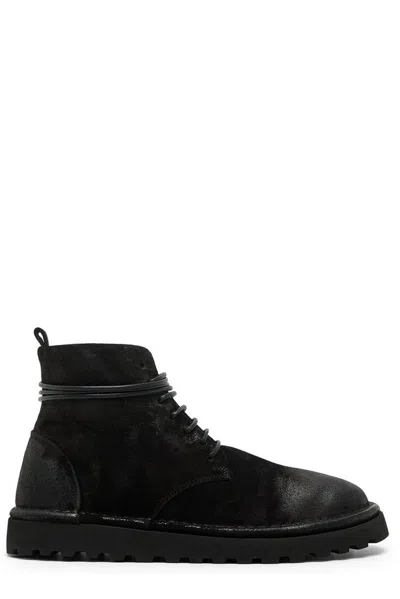 A seamless merging of form, colour and texture characterizes Marsèll's approach to shoe-making. Sturdy, classic shapes undergo a process of subtle distortion: a detail is overblown gaining visual prominence, or it is totally erased; heels get a sculptural shape; meticulous finishing adds a dash of polish where you'd least expect it; a slice, or a hole, turn into design statements.