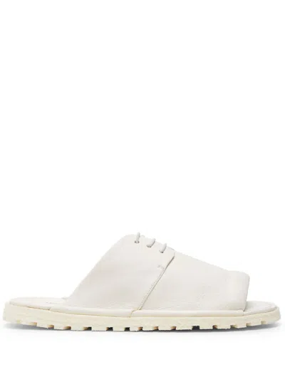 A seamless merging of form, colour and texture characterizes Marsèll's approach to shoe-making. Sturdy, classic shapes undergo a process of subtle distortion: a detail is overblown gaining visual prominence, or it is totally erased; heels get a sculptural shape; meticulous finishing adds a dash of polish where you'd least expect it; a slice, or a hole, turn into design statements.