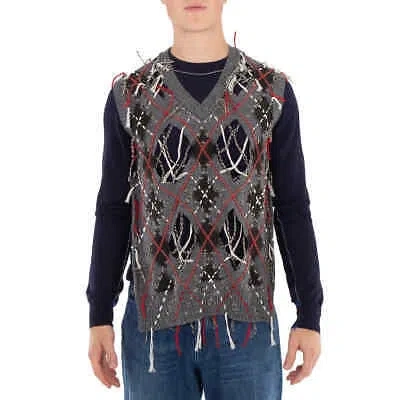 Pre-owned Maison Margiela Men's Grey / Dark Green / Walnut Cut-out Intarsia-knit Vest, In Multicolor