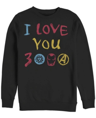 Men's Avengers Endgame Iron Man Hand Drawn I Love You 3000, Crewneck Fleece In Black