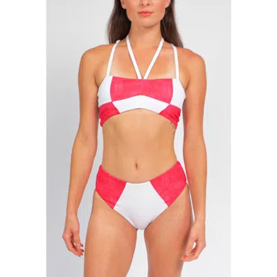Massi Bikini Top With Color-blocked Tile Pattern In White And Red