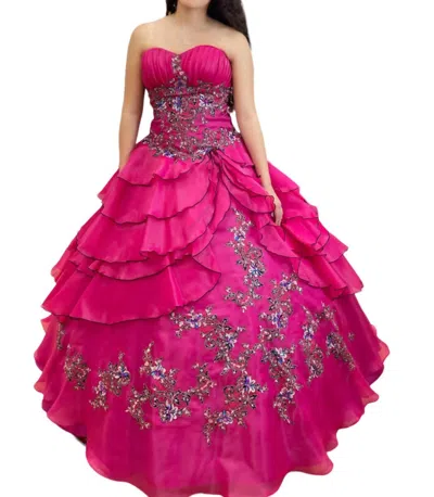 Strapless Embellished Quinceañera Dress In Magenta/light Pink In Multi