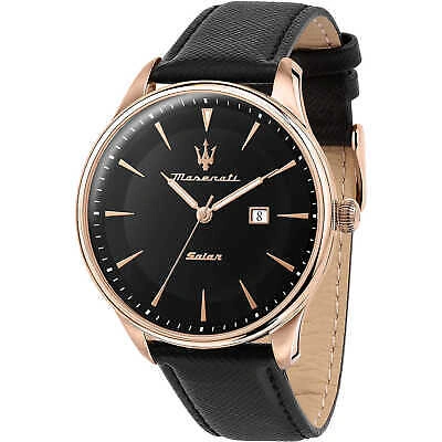 Pre-owned Mens Solar Wristwatch Tradizione R8851146001 Leather Black Gold Rose