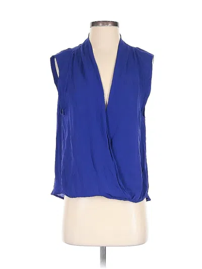 Pre-owned Sleeveless Silk Top Blue Plunge Neckline Tops