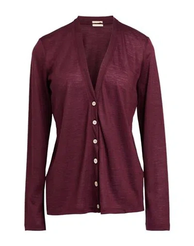 Woman Cardigan Plum Size L Wool In Burgundy