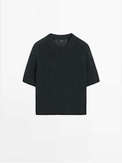 Suéter De Punto Manga Corta In Blue
