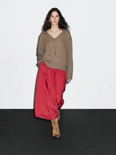 100% Silk Short Batwing Sleeve Blouse In Brown