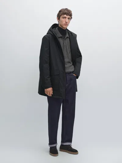 Textured Long Sleeve Polo Shirt In Black
