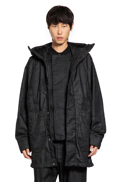 Resined And Garment Dyed Hooded Jacket In Black