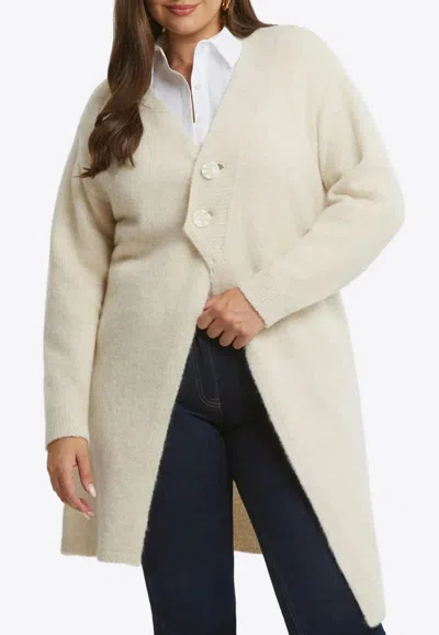Collarless Knitted Cardigan In Gray