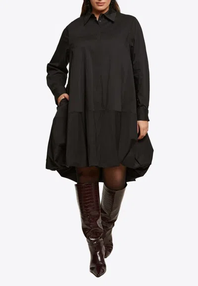 Balloon Knee-length Shirt Dress In Black