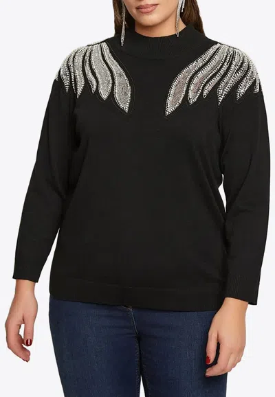 Embellished Knitted Top In Black