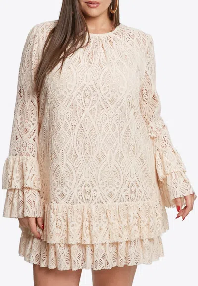 Ruffled Lace Mini Dress In White