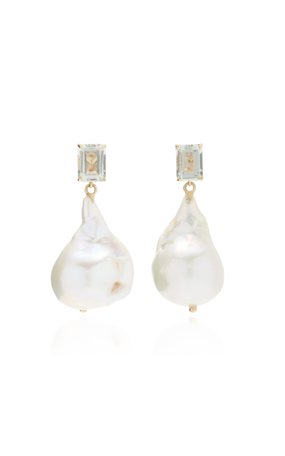 14kt Yellow Gold Baroque Pearl And Topaz Drop Earrings