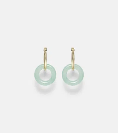 14k Yellow Gold Jade Donut Hoop Earrings In Green