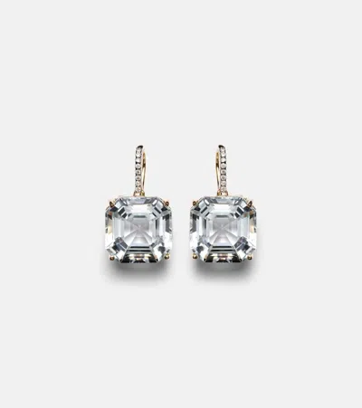 14k Yellow Gold Diamond Quartz Earrings In Yeloow Gold
