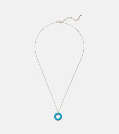14kt Gold Pendant Necklace With Turquoise In Metallic