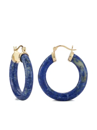 14k Yellow Gold Lapis Lazuli Hoop Earrings In Black