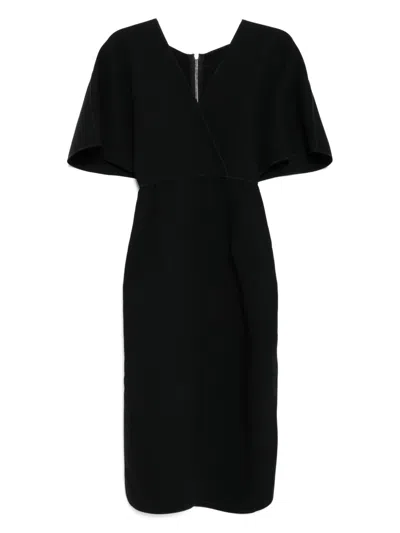 V-neck Short Sleeves Dress In Black
