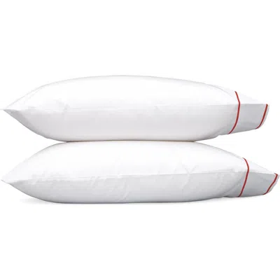 Set Of 2 Ansonia 500 Thread Count Cotton Percale Pillowcases In White/chinese Red