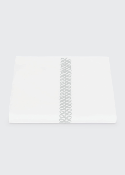 Twin Scallops Embroidered 350 Thread Count Flat Sheet In White/blue