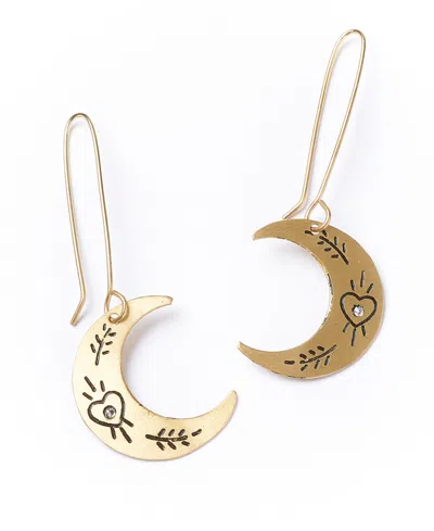 Ruchi Crescent Moon Gold Dangle Earrings In Brass