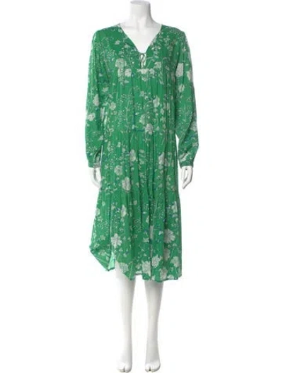 Pre-owned Floral Print Midi Length Dress In Green