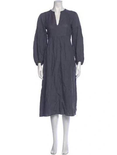 Pre-owned Linen Midi Length Dress In Blue