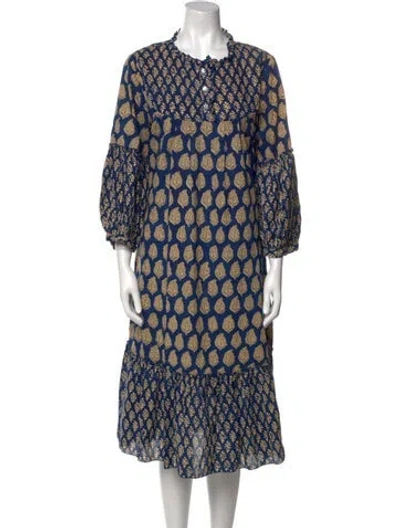 Pre-owned Printed Midi Length Dress In Blue