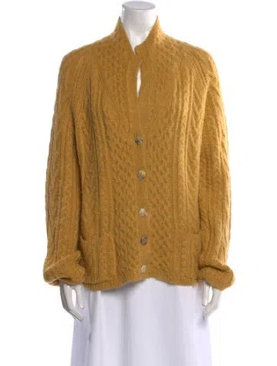 Pre-owned Baby Alpaca V-neck Sweater In Yellow
