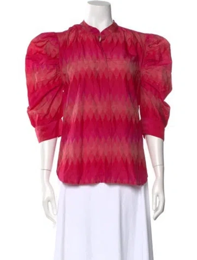 Pre-owned Printed Mock Neck Blouse In Pink