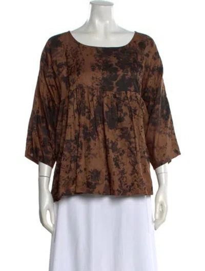 Pre-owned Tie-dye Print Crew Neck Blouse In Brown