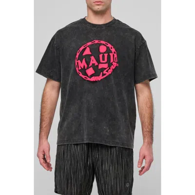 Maui & Sons Maui Tag Mineral Wash Cotton Graphic T-shirt In Black