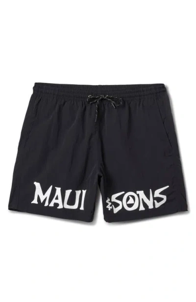 Maui & Sons Billboard Nylon Swim Trunks In Black