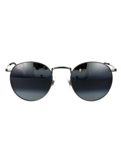 Shiny Dark Ruthenium Metal Sunglasses In Green