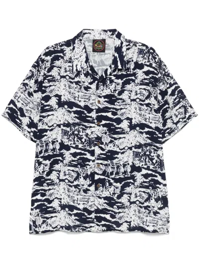 Navy And Multicolor Viscose Shirt In Blue