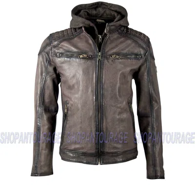 Pre-owned Vinn Hooded 100% Genuine Lambskin Fashion Leather Jacket For Men In Gray