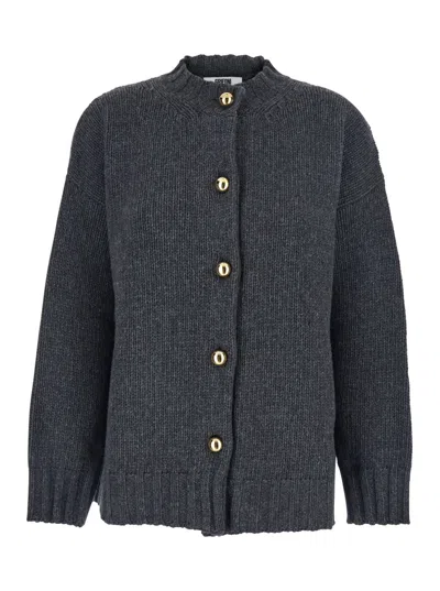 Long-sleeved Cardigan Sweater In Gray